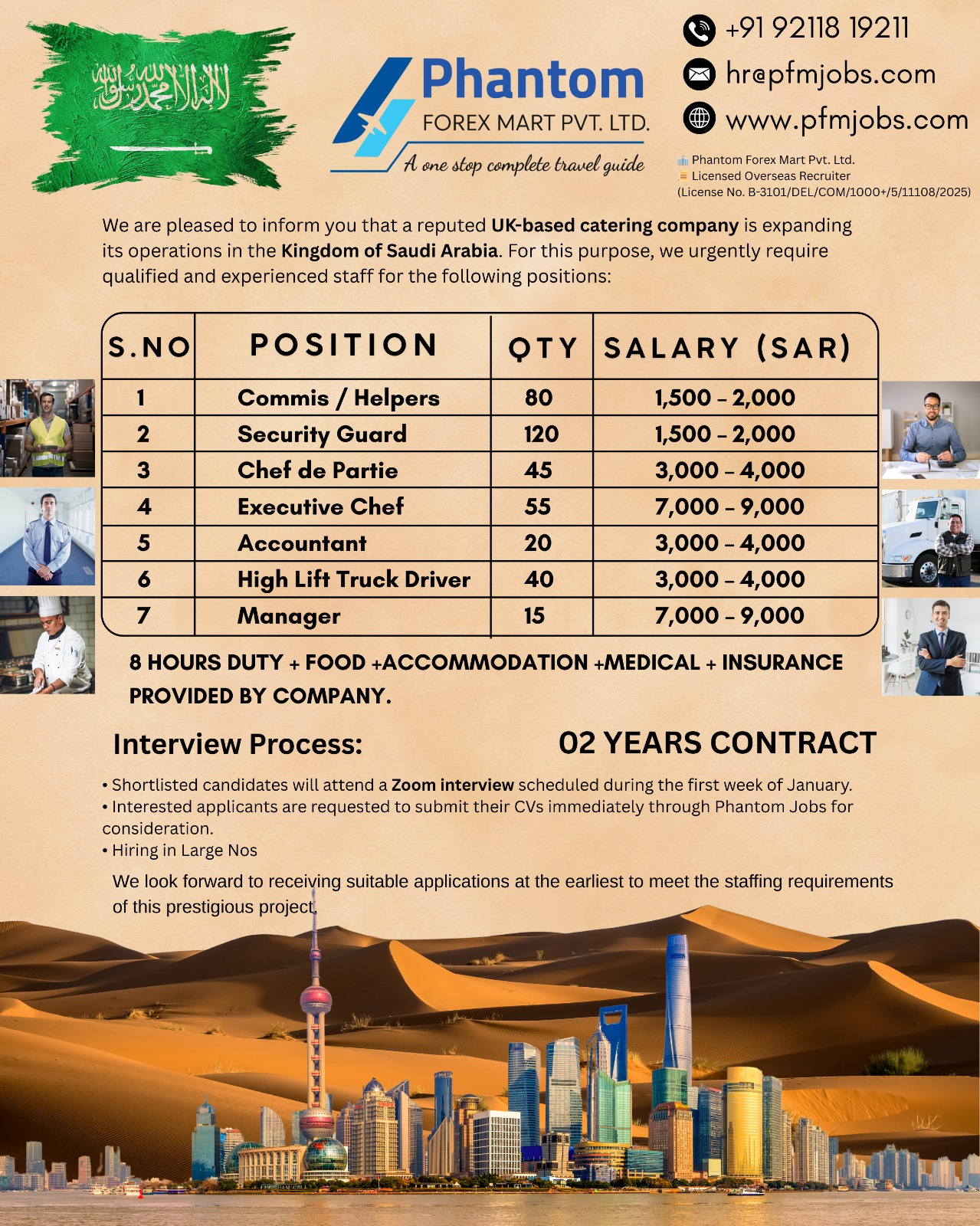 ✔ 8 Hours Duty ✔ Food ✔ Accommodation ✔ Medical ✔ Insurance Provided by the company